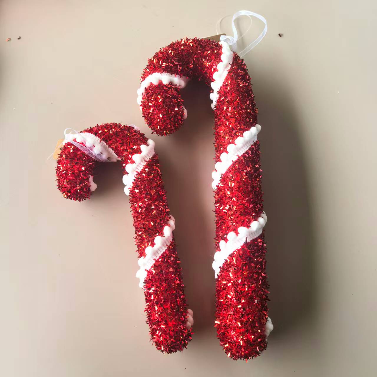 这款泡沫圣诞糖果装饰品采用高品质的闪光泡沫手工制作,采用经典的红白条纹糖果形状,表面闪亮闪亮。非常适合圣诞树装饰、节日派对和家居造型,为您的空间增添甜美的节日氛围。